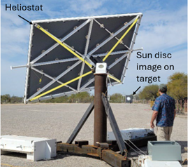 Actual Outcome: The project was successfully completed within the proposed timeframe. A prototype of this novel heliostat design was built and set up for testing at the University of Arizona grounds. Together with the closed-loop tracking technique, a sharp sun disc image was successfully demonstrated. The heliostat was able to maintain the sun disc image close to the theoretical diameter and reliably centered on the target during a full day (Figure 8 and Figure 10). It worked so well that the team used the heliostat to observe the solar eclipse, which was visible in May 2024 in Arizona (Figure 9).